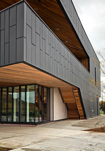 Our metal panel systems redefine modern architecture. ABSTERAS offers a full range of aluminum composite panels (ACP), zinc, copper, and steel-based systems that deliver on both durability and design. With clean lines and sharp edges, metal panels lend a bold, industrial elegance to façades.